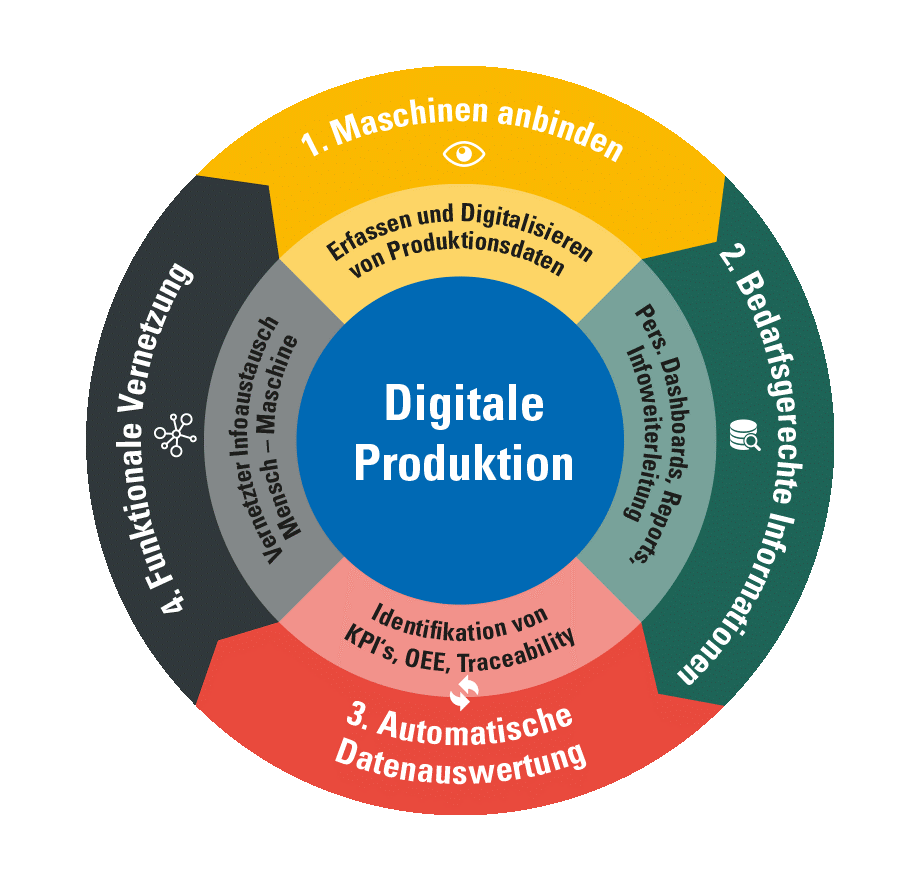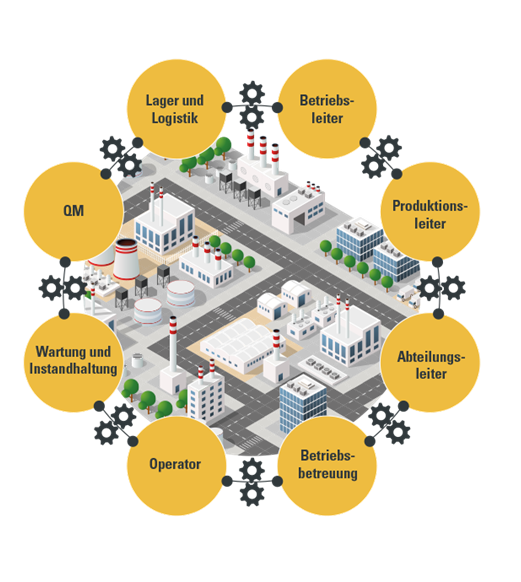 - Automatisches Reporting der benötigten KPIs (Stillstände, Störungen, Stückzahlen etc.) an verschiedene Empfängerkreise